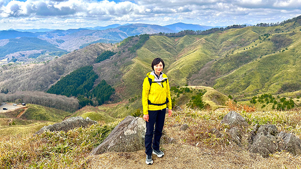 本上さんが登るのは、広島県と島根県にまたがる雲月山。 草地を保つために春になると山焼きが行われることで知られている山で、国定公園にも指定されています。今回は岩倉山、高山と経由して雲月山の山頂を目指します。 2週に渡ってお送りする前編では、まずは岩倉山へ向かいます。 スタート地点の駐車場近くには早くも展望スポットがあり、美しい緑が広がります。 また、今回の登山道は高い木々があまりなく、視界が開けているため、開放的な山行が楽しめます。 ヨモギやフキノトウなど、春の植物と触れ合いながら笹の急登を上がると、岩倉山の山頂に到着。そこからは島根県のほぼ中央部にそびえる火山「三瓶山」など、 中国山地の大パノラマが望めます。さらに稜線上にある展望スポットからは、雲月山の草原を見渡す絶景が待っていました。 雲月山(うづきやま) 広島県北広島町 島根県浜田市 標高:911m