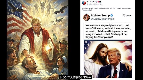 ローマ教皇レオ14世は16日、「世界は一握りの暴君に蹂躙されている」と世界の指導者を痛烈に批判。トランプ大統領が念頭にあると見られる。欧州で最も親しいとされたイタリアのメローニ首相も教皇側に立ち、トランプ氏を批判してきた。また、トランプ氏は自身をキリストのように描いたAI画像を投稿し猛批判を浴びた。強力な支持基盤MAGA派などの離反も相次ぐ米政権の現状を読み解く。
