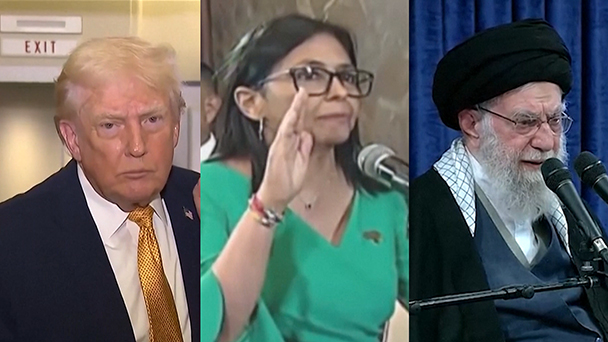 ベネズエラ・ロドリゲス暫定大統領(中央)イランの最高指導者・ハメネイ師(右)