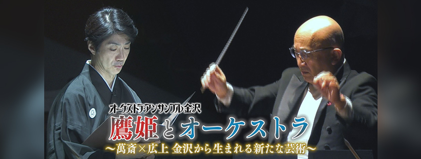 日本を代表する指揮者でオーケストラ・アンサンブル金沢を率いる広上淳一と、当代屈指の人気狂言師として日本の伝統芸能をリードし、石川県立音楽堂のアーティスティック・クリエイティブ・ディレクターとしても活躍する野村萬斎。