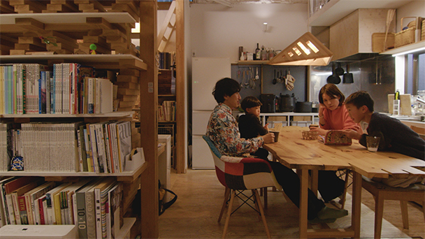 およそ55万人が暮らす八王子市。都心の大学が次々と移転した一大学園都市でもあります。古くから養蚕が盛んで、江戸時代には絹織物や生糸を取引する市が立つ「桑の都」でした。幕末に鎖国が解かれると八王子の生糸は海外へ。横浜港まで運ぶために利用された道は、のちに「絹の道」と呼ばれるようになりました。 今回はこの街で築31年の祖母から受け継いだ木造平屋建てをリモデルされた建築家ご夫妻を訪ねます。元々は奥様のおばあさまが一人で住んでいた60平米の平屋。それを4人家族が暮らすために、限られた空間を最大限に使うアイデアをふんだんに詰め込み大改造!さらに、家を解体する際に必ず出てしまう廃材をフル活用し、極力“ゴミを出さない”リモデルを実現したのです。 一家のシンボル的存在となるのが、玄関を入ってすぐの土間にある大きな収納棚。地元・多摩産の杉材を積木のようにX状に積み重ねることで、構造体としても強固な大黒柱となりました。また、家を支えるだけでなく、大量の本を収納したり、さらにはデスクの役割も果たしているんです。 子ども部屋として使っているロフトと1階の物の移動は、DIYで造作した滑車を活用。遊び心があって、子どもたちのおもちゃの片付けにとても便利だそうです。 全国的にも空き家が増えている中で、お金をあまりかけずに元々あるものをいかに再生し、持続させていくかが今回のテーマとなったリモデル。週末に家族みんなでDIYをしながら造り上げていったそうです。2人のお子さんが「自分の家を自分で造った」という体験と記憶が、未来に繋がるようなリモデルとなりました。 設計担当:富永大毅・藤間弥恵/TATTA https://www.ht-at.com