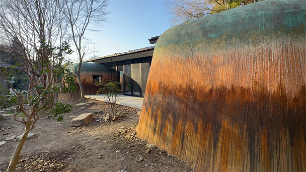 「土のかまくら」と呼んでいる増築部分の外壁や内壁には陶芸で使う土を混ぜたこだわりも。さらにこの「土のかまくら」は母屋の構造を支えるための補強にもなっています。