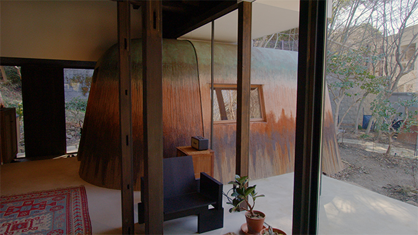 三方を山に囲まれ、一方が海に面した「天然の要塞」とも言える神奈川県鎌倉市。今や国内外から年間1500万人が訪れる一大観光地です。 そんな鎌倉の山の坂を登って行くと、そこにはなんとも不思議な建物が!? 今回はこの街で築59年の木造平屋建てをリモデルされた建築家のM邸を訪ねます。元々この家は、Mさんのご両親が50歳で陶芸家に転向したのを機に購入し、都内から移り住んだ家でした。Mさんは、2019年の台風の被害で両親が住むこのエリアが孤立状態になり連絡が取れなくなったことから、両親との同居を決意。災害対策も対応しつつ、この土地を活かした、この家族ならではのとっても個性的な2世帯住宅にリモデルしたのです。 最初に考えたアイデアを父から「住みやすそうだがつまらないよね」と言われたMさん夫妻は、ご両親が陶芸家ということで、『土』をテーマにした住まいを考えました。 家族それぞれが陶芸や建築などの創作活動を行うため、生活時間がバラバラになってしまうので、増築した四隅の部屋を家族の個室にし、中心にはおよそ30帖のLDKを配置。集まる時は真ん中で、それ以外は個人の部屋で…と、まるで縄文集落を連想させる間取りにしました。 「土のかまくら」と呼んでいる増築部分の外壁や内壁には陶芸で使う土を混ぜたこだわりも。さらにこの「土のかまくら」は母屋の構造を支えるための補強にもなっています。 一見、奇抜なお宅ですが、その土地に馴染み、篭れるけれども開放的な、そして、家族と家がそれぞれ経年変化し歴史を刻む、素敵なリモデルとなりました。 設計担当:桝永絵理子・海老塚啓太/AATISMO https://aatismo.com/profile/