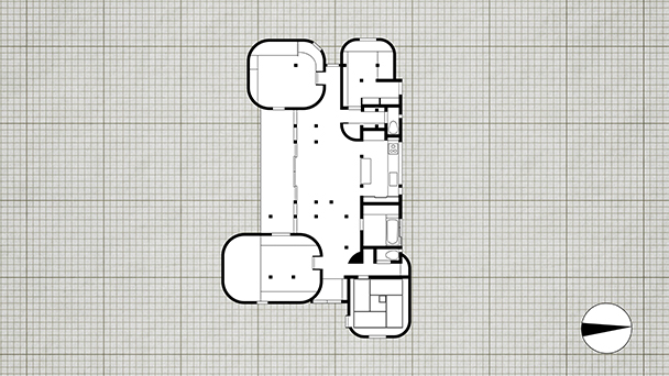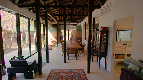 家族それぞれが陶芸や建築などの創作活動を行うため、生活時間がバラバラになってしまうので、増築した四隅の部屋を家族の個室にし、中心にはおよそ30帖のLDKを配置。集まる時は真ん中で、それ以外は個人の部屋で…と、まるで縄文集落を連想させる間取りにしました。