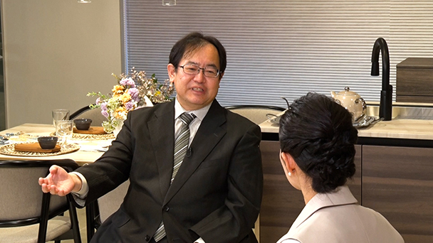 また、事業統合の理由や注力する高断熱技術、環境配慮型住宅への取り組み、さらには社員に求める姿勢や座右の銘「報・連・相」に込めた思いを語る。