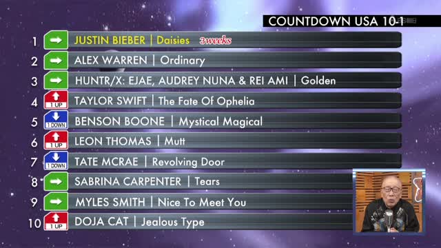 ジャスティン・ビーバーが「Daisies」で3週連続の1位を獲得し、圧倒的な強さを見せています。小林さんは、彼がマネージャーから独立し、自由に楽曲制作を行っているので、この次何が起こるか楽しみと期待。また、テイラー・スウィフトが4位に浮上し、放送回数の多さでその人気ぶりを示しています。小林さんが特に注目しているのは6位のレオン・トーマス。無名の状態からじわじわと順位を上げてきた彼の今後の活躍に期待を寄せました。