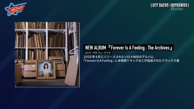 ルーシー・デイカスのソロ曲「ベスト・ゲス」も紹介。彼女はインタビューで「永遠を約束できる人は誰もいない。でも、過ぎゆく瞬間に永遠を感じることがある」と語り、その思いを込めて制作したというソロ4枚目のアルバム『Forever Is A Feeling : The Archives』について触れました。