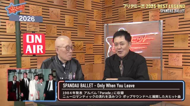 BEST LEGENDの3曲目は、スパンダー・バレエの「Only When You Leave」。この曲には有田さんの特別な思い出が。最近、中学時代の友人から、1984年の年末に有田さん自身が書いて送った「アリデミー賞1984」のランキング付き年賀状の写真が送られてきたとのこと。当時から「ベストヒットUSA」に影響されて独自のランキングを作っていたそうで、「なんとその時の1位が、スパンダー・バレエの『Only When You Leave』だったんです」と、中学生の自分が選んだ意外な1位に驚いたエピソードとともに、自身の音楽遍歴の原点ともいえる一曲への熱い思いを明かしました。小林さんも「渋いね!」と感心していました。