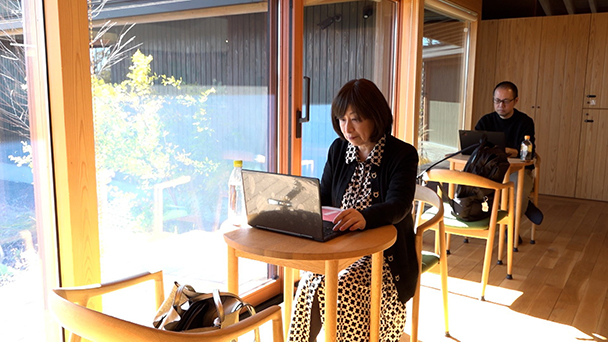 “ウェルビーイング”それは社会、企業、地域、そして人々を輝かせるための合言葉。有数のリゾート地・軽井沢に、ソフトウェアの開発・販売を行う会社、アステリアの「リゾートオフィス」があります。“森の書斎”をイメージした建物には、キッチンやシアター、様々な設備が。 社員同士の交流を促そうと、地元のシェフによる昼食会が定期的に催されます。気分の良い環境で、生産性・創造力もアップ!